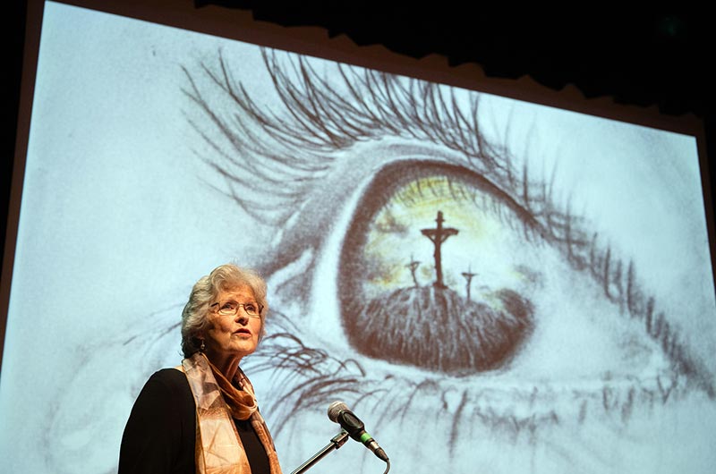 She shared artwork created by her 13-year-old granddaughter depicting Mary’s eye as she looks at Jesus on the cross. Baroness Hollins said of the drawing: “I feel that I’m being drawn towards something, being invited into a mystery that’s puzzled me all my life.”